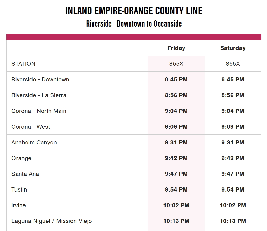 부에나팍이나 풀러툰이 아닌 오렌지, 산타아나, 터스틴, 어바인에서 출발하는 경우에는 인랜드 앰파이어 라인을 타셔야 합니다. 이 역시 시간표를 같이 첨부해 드리오니 참고하시길 바랍니다.