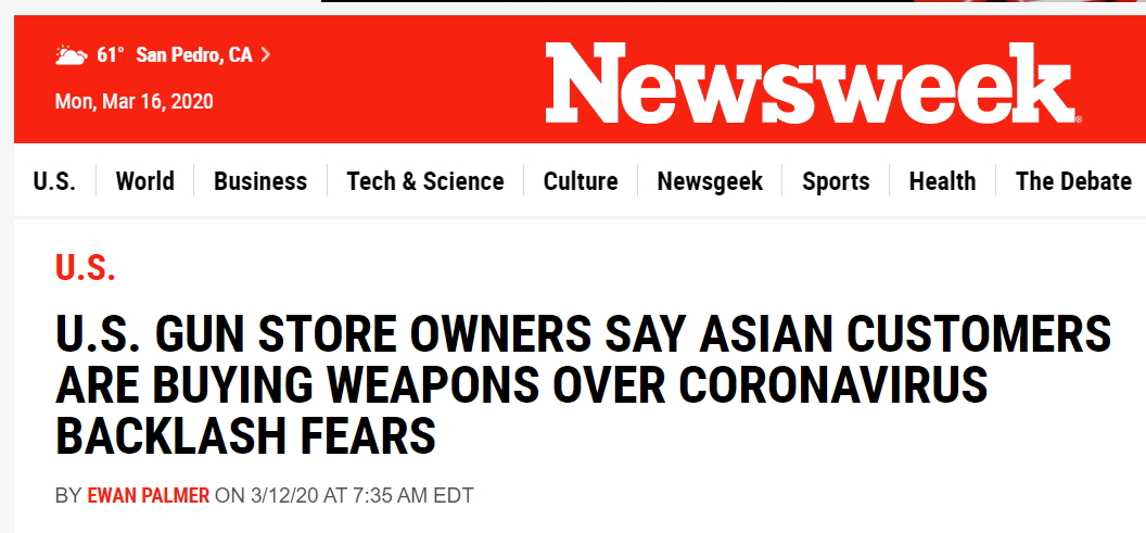 최근 한 지역 언론은 아시안들의 총기 구매가 이번 코로나 19와 관련 부쩍 늘었다고 합니다. 심지어 총알 판매도 함께 증가했다고 하네요. 스스로를 지켜야 할 상황이 올지도 모른다는 불안감이 미국에 사는 아시안들에게 더욱 깊게 드리워지는 것 같습니다. 어서 빨리 이 사태가 지나가길 기도합니다. 아래 해당 영상을 공유해봅니다.