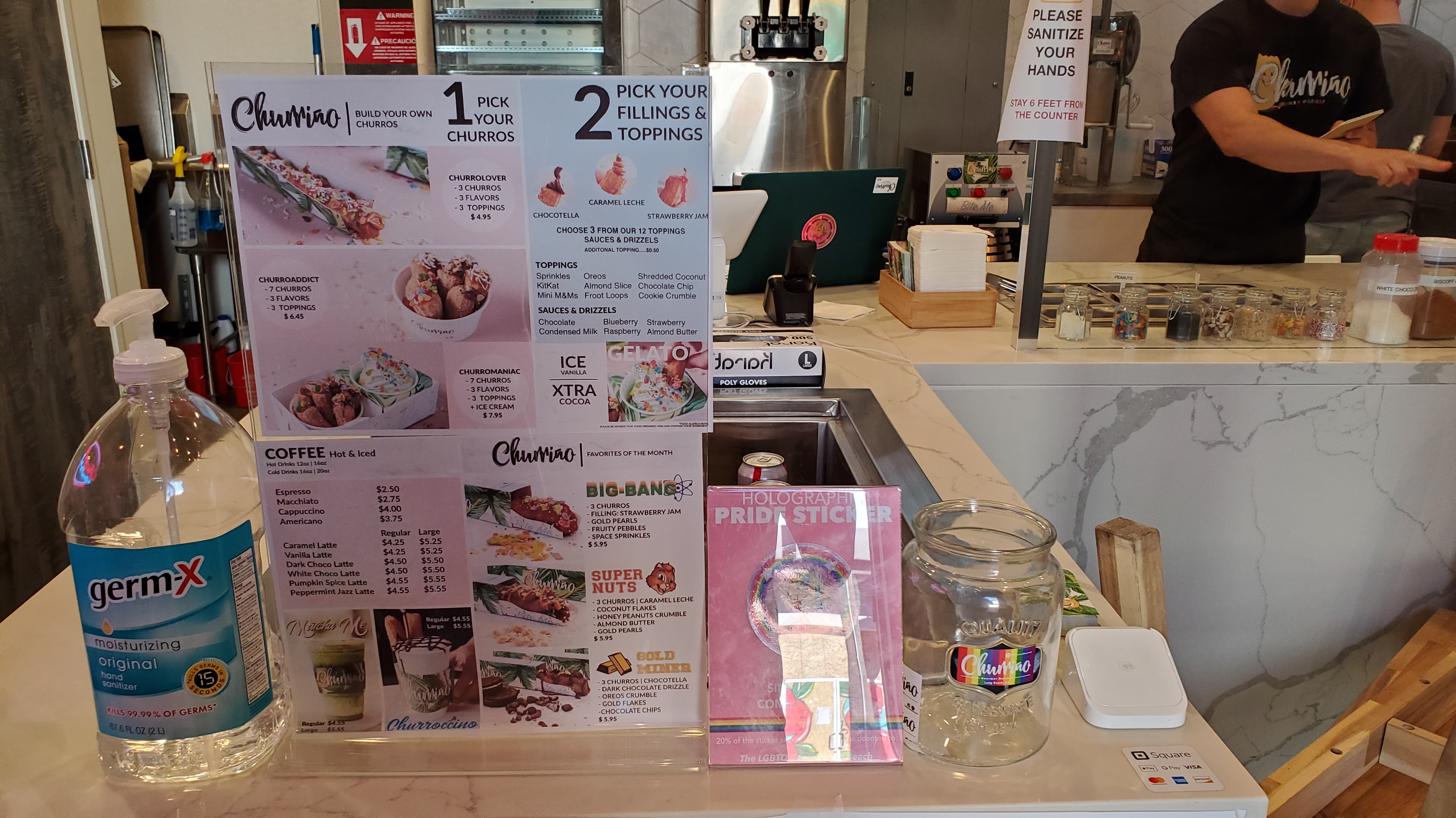 작은 가게 안으로 들어가면 최근 코로나 19로 인한 제한적 영업 및 내부에서도 거리를 유지해야 하는 이유로, 직원과 멀리 떨어져서 주문을 하고 결제를 해야 합니다. 우선 메뉴를 한번 살펴봅니다. 츄로에 대한 지식이 없다면 정말 조금 어려울 수 있겠습니다. 이 집의 역사를 한번 들어보니 창업자 닉과 켈빈 씨가 대학교에서 만나 그들만의 디저트 가게를 열자는 꿈을 키웠다고 하네요. 지난 2017년 그들은 정통 브라질/라틴 스타일 맛을 내는 츄로를 만들자는 계획을 세우고 츄리노 고메(Gourmet) 디저트를 세우고 가게를 열었습니다.