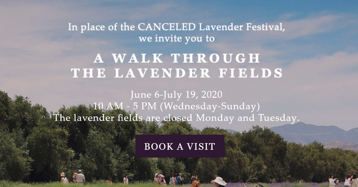해마다 남부 캘리포니아의 6월은 라벤더 블라썸이 시작됩니다. 지역에 따라 조금 시기적으로 차이가 있지만, 남부 캘리포니아 체리 밸리 지역에 자리한 하이랜드 스프링스 랜치 안 123 팜(123FARM)에서는 6월에는 늘 라벤더 축제를 시작했답니다. 그런데 올해는 코로나 19로 인해 축제가 취소됐네요. 그 대신 라벤더 꽃밭을 걸을 수 있는 이벤트는 문을 열었습니다.