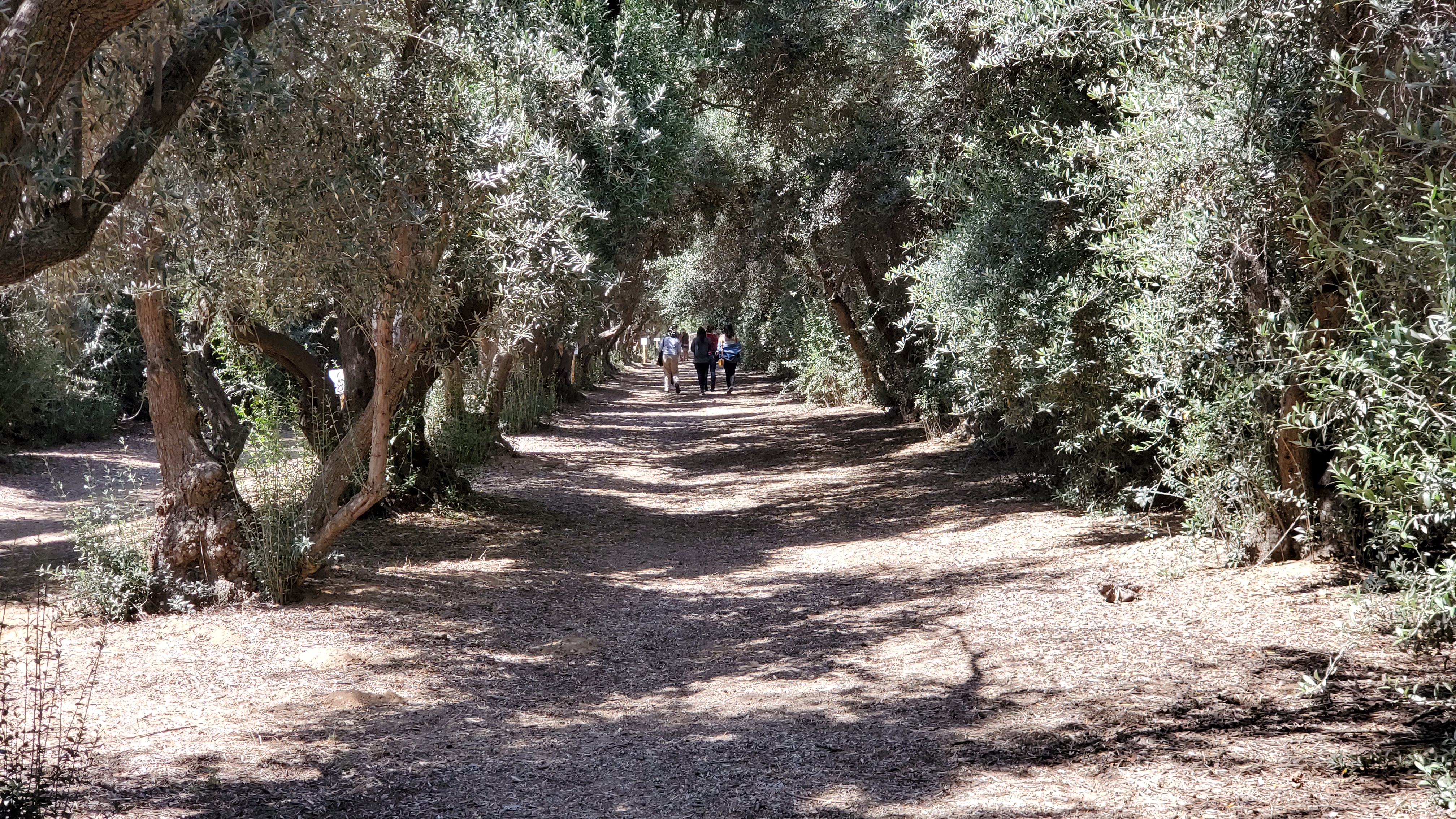 관람 루트는 라벤더 밭을 지나서 올리브 나무 숲을 따라 돌아나오도록 만들었습니다. 나름대로 일방통행이라고 할까요? 올리브 나무가 마치 터널처럼 이어진 이곳에서는 농장의 역사 이야기를 담은 그림과 배너가 걸려있습니다. 마치 야외에 전시된 갤러리를 보는 듯합니다.