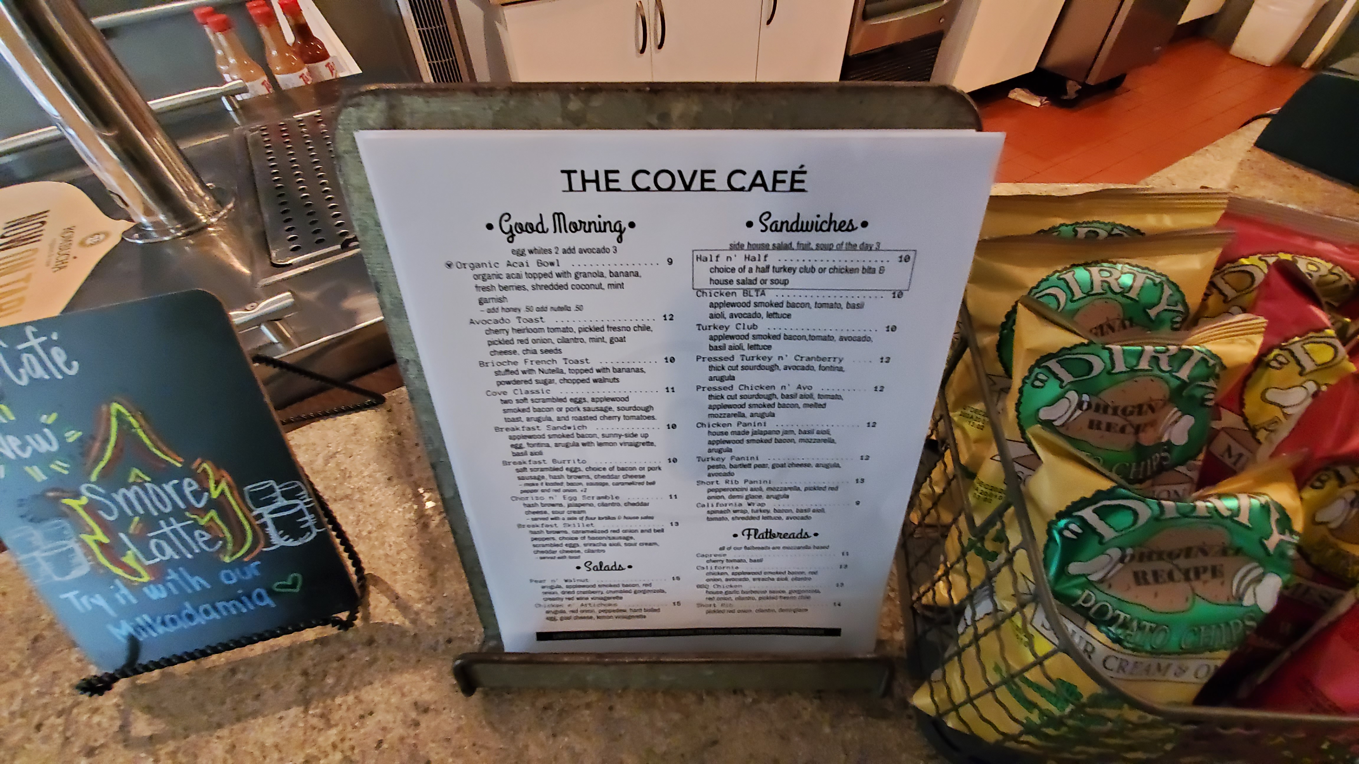너무 멋있고 이국적인 이곳에는 남다른 맛집도 가득한데요. 평소 사람들이 자주 찾는 옐로우 베이스(Yellow Base)도 좋지만, 오늘은 조금 특별한 카페를 찾아가 봅니다. 건물 안쪽에 자리해 잘 보이지 않는 곳에 자리한 더 코브 카페(the Cove Café)는 커피맛과 간단한 아침 또는 점심을 즐기기에 너무 좋은 메뉴와 맛을 가지고 있습니다.