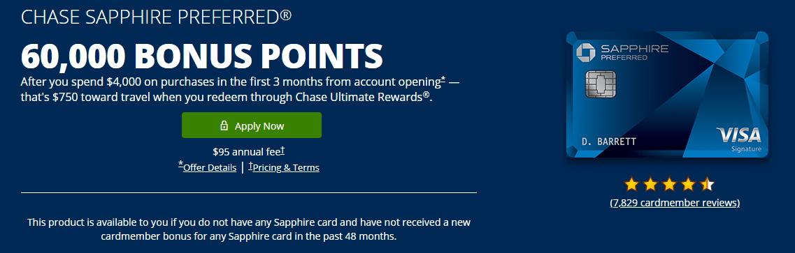 보너스 리워드 두둑. 체이스 사파이어 프리퍼드