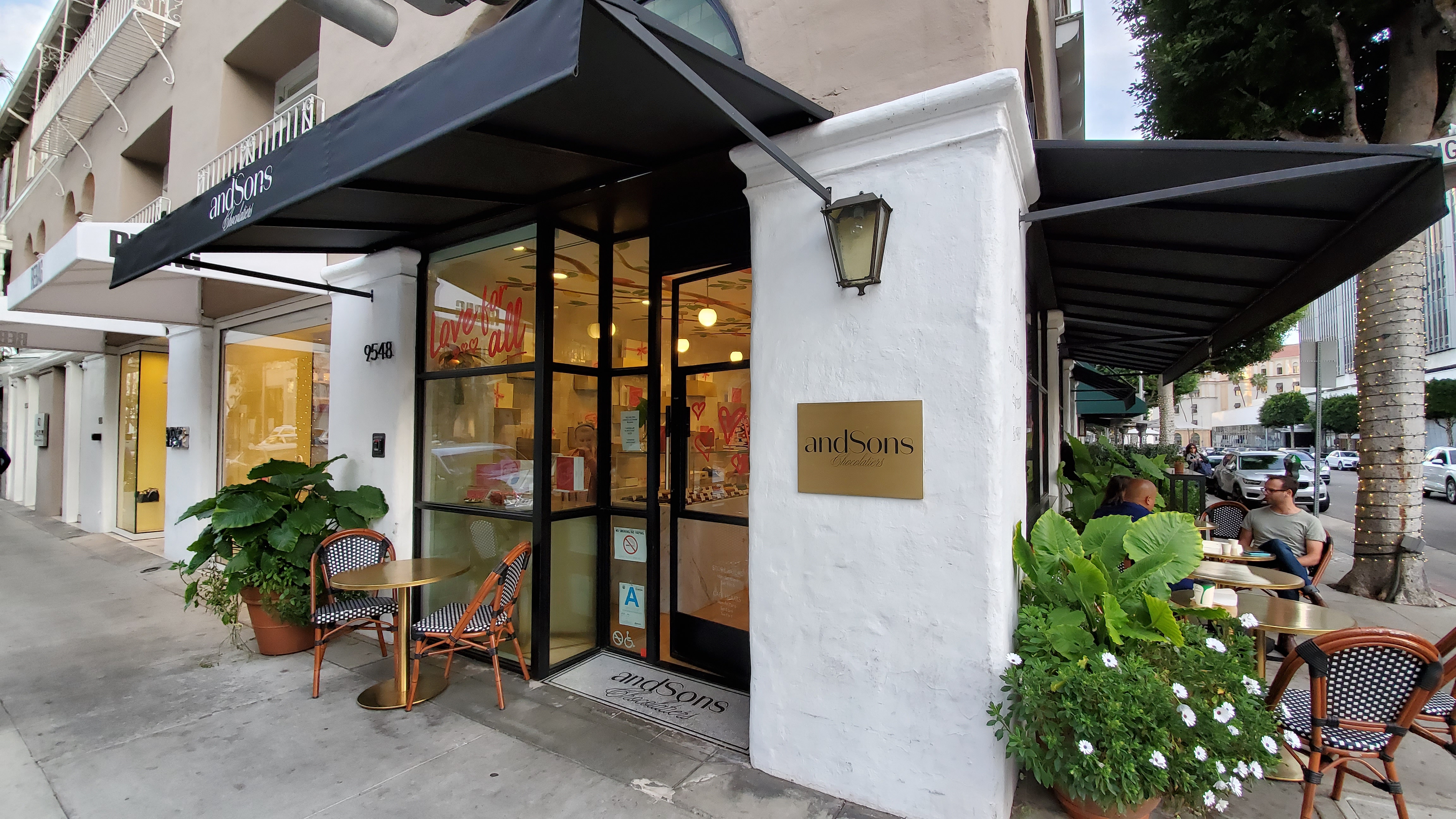 LA에서 가장 화려하고 값비싼 명품 매장이 몰려있는 베벌리힐스 로데오 거리. 이곳에서 멀지 않은 곳인 브라이튼(Brighton) 웨이와 노스 캠던(N Camden) 드라이브가 만나는 사거리 코너에는 작은 초콜릿 가게가 자리해 있습니다. 검정색 어닝에 새겨진 앤드선즈라는 글씨를 따라 가게 안으로 들어서면 베버리힐스의 역사와 함께 한 명품 초콜릿 가게를 만날 수 있습니다.