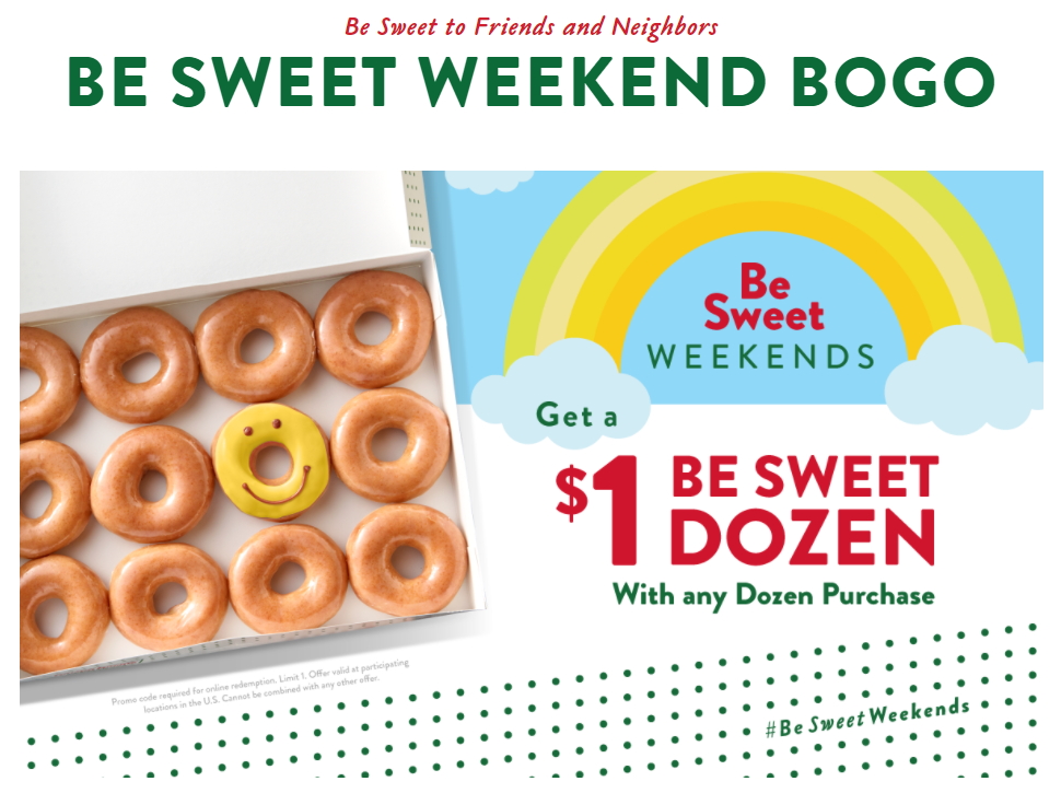 여기에 그치지 않고 '비 스위트 위크엔드'라는 이벤트로 진행중입니다. 크리스피 크림 도넛 1박스(12개 들이)를 사게 되면 또 다른 1박스를 $1에 살 수 있다는 것인데요. 매일은 아니고 5월 23일까지, 토요일과 일요일 사이에 진행되는 이벤트라고 합니다. 또한 5월 24일까지 매주 월요일에 매장을 찾으면 구매하지 않더라도 1개의 오리지널 글레이즈 도넛과 미디엄 커피를 무료로 제공한다고 하네요.