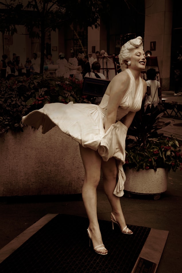 시대를 대표하는 배우 마릴린 몬로는 수많은 명장면을 많이 남겼습니다. 그중에서도 1955년 <7년 만의 외출>이라는 영화는 그녀의 아주 특이한 포즈 하나 때문에 지금도 사람들의 기억 속에 남을 마릴린 몬로의 대표적인 모습으로 통합니다. 영화 속 뉴욕 렉싱턴가 52번지 지하철 바람이 뿜어져 나오는 통풍구 위에 선 마릴린 몬로는 지하철이 지날 때 그녀의 치마가 올라간 장면이 나옵니다. 그때 놀라면서 치마를 내리는 그녀의 모습은 마릴린 몬로의 대표적인 이미지로 굳어졌지요.