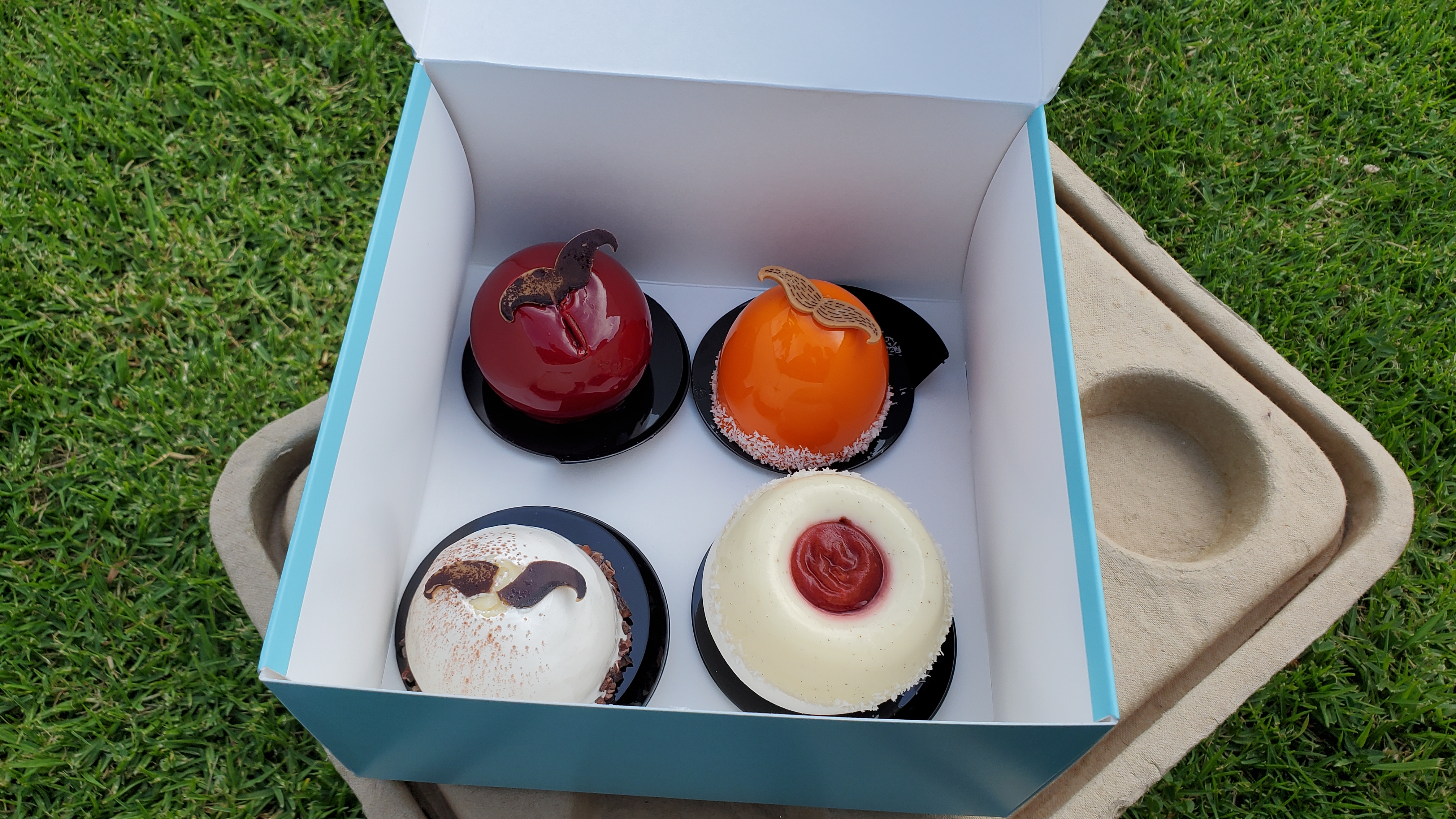마카롱과 크라상도 꼭 맛봐야 할 메뉴 중 하나이고, 커피는 네스프레스 제품으로 부드러운 맛과 향을 지닌 것이 특징입니다. 저는 네 가지 종류의 케이크를 한번 사봤는데요. 이것을 담아주는 박스 또한 컬러와 디자인이 참 마음에 듭니다. 여러모로 참 괜찮은 디저트를 먹고 있구나라는 생각을 주기에 부족함이 없는 브랜드입니다.