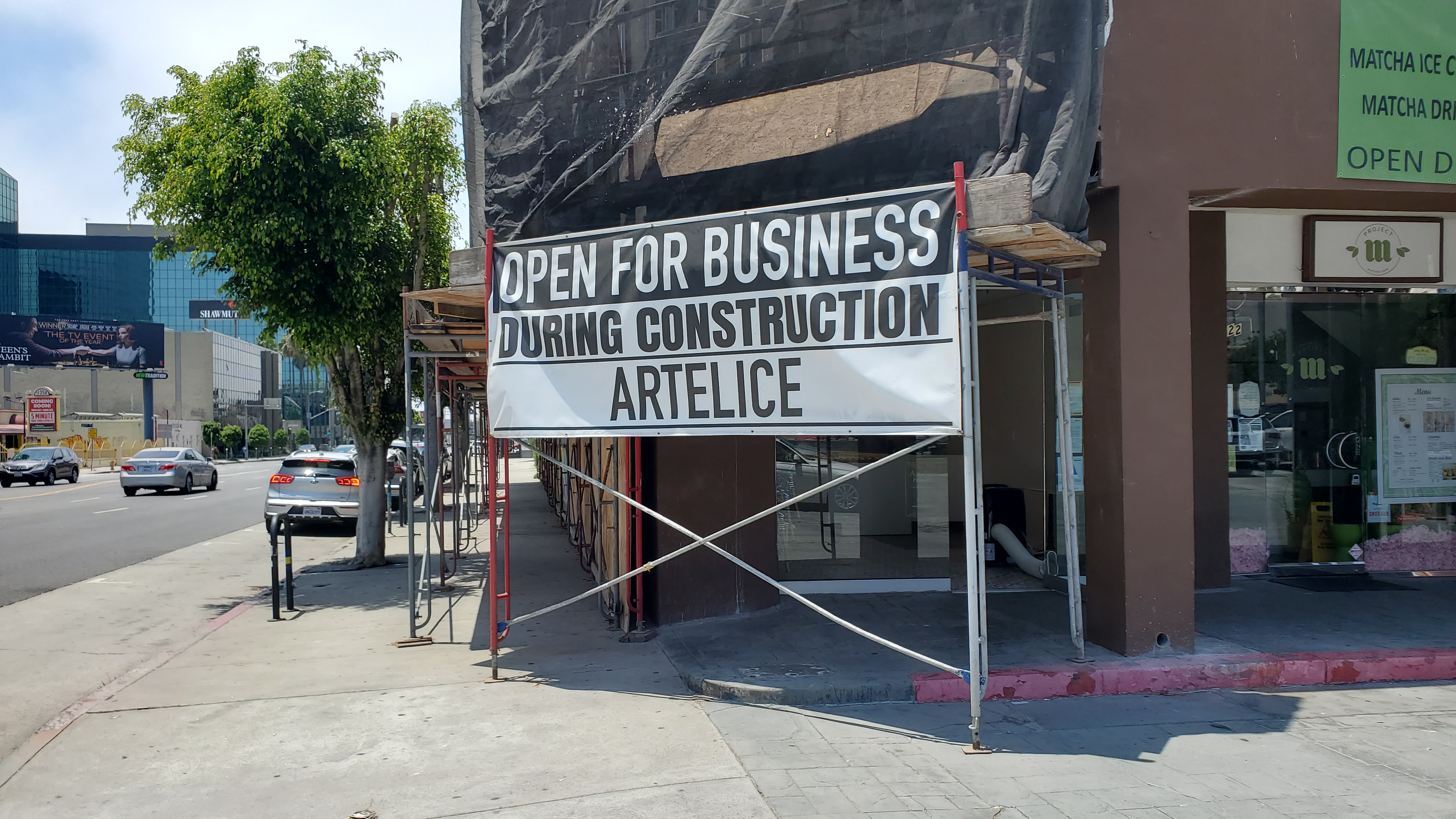 ARTELICE는 현재 소텔 지점과 버뱅크에 두 번째 매장을 냈고요, 저는 첫 번째 매장인 소텔 지점을 한번 들려봤습니다. 웨스트 LA 일본 타운 입구 쪽에 자리한 가게는 방문 당시에 빵집이 자리한 건물 전체가 외관 리모델링 중이어서 간판을 찾기가 좀 어려웠습니다. 다만 '공사 중에서 영업한다"는 배너를 보고 겨우 찾아들어갑니다.