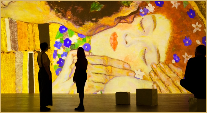 클림트 작품 자체가 독특한 황금 색채를 지니고 있기에 아마도 역대 이머시브한 그 어떤 전시회보다 가장 멋지지 않을까 생각됩니다. 이 전시회를 위해 수십 대의 대형 프로젝터와 15,000개의 스크린, 첨단 VR 등이 도입되어 마치 그의 작품 속 안으로 들어가서 감상하는 듯한 기분을 누릴 수 있을 것으로 보입니다. 어쩌면 유명한 <키스> 작품을 보다 더 디테일하게 볼 수도 있지 않을까요.
