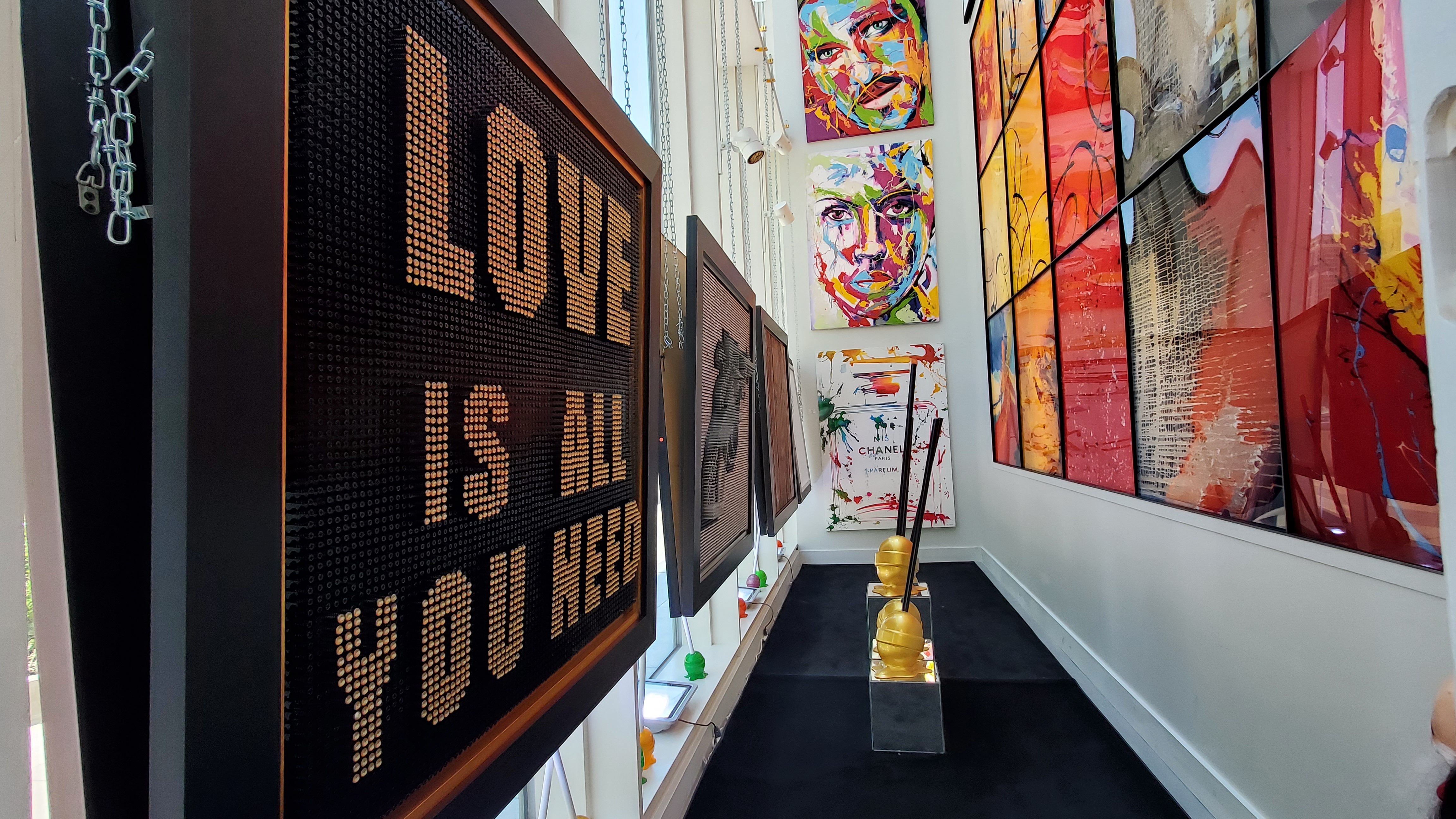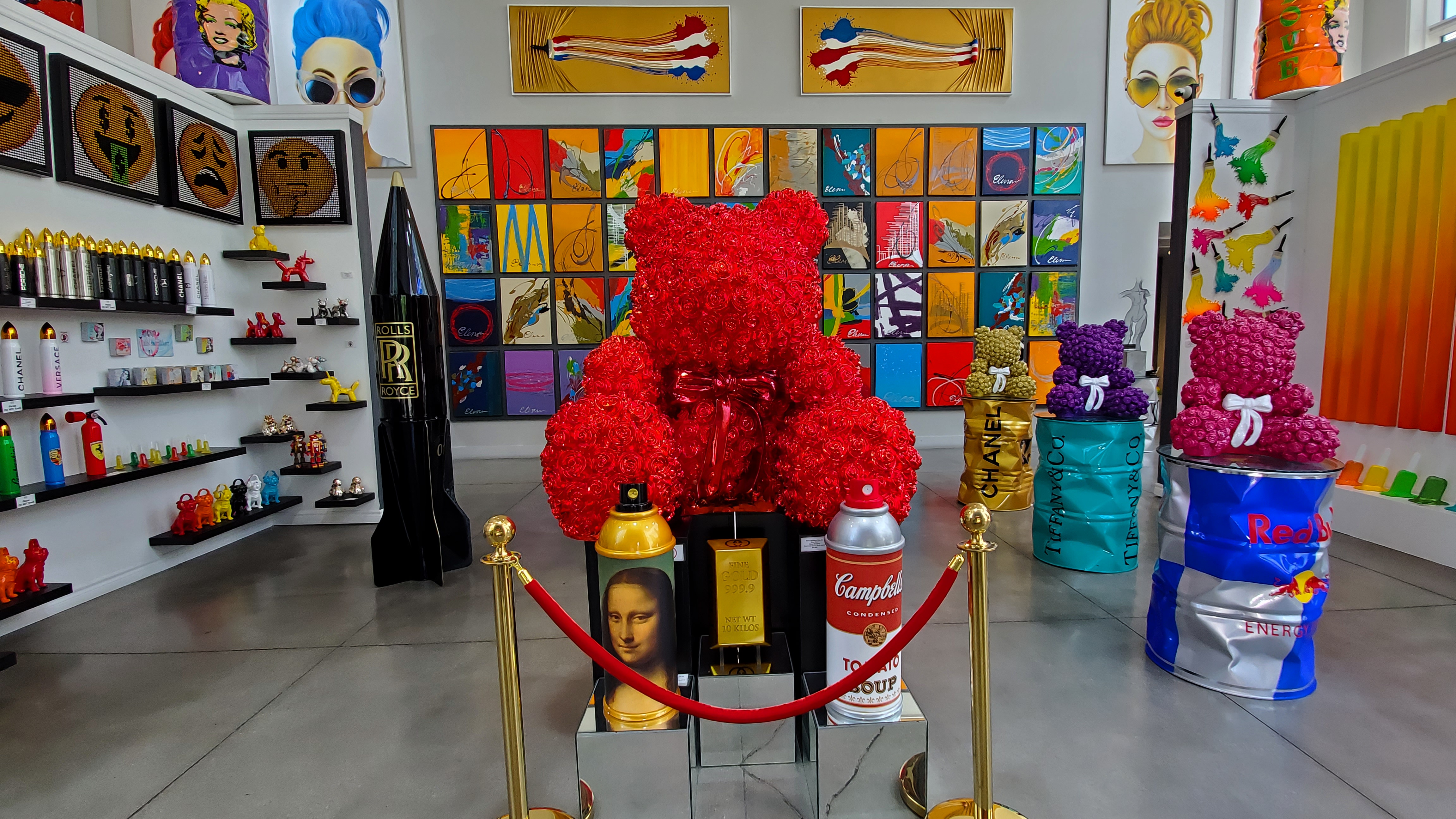 엘레나 불라토바는 캘리포니아 팜스프링스와 네바다 라스베이거스를 기반으로 활동하는 러시아 출신 예술가입니다. 그녀는 선명한 색상과 금속 재질의 느낌을 살려낸 작품 등으로 유명한데요, 롤리팝스나 팝시클 등을 묘사한 '스위트 라이프'로 주목받는 작가입니다. 갤러리 내부에는 그녀의 작품을 포함 약 9명의 여러 유명 팝아트 작가의 전시들도 함께 만날 수 있습니다.
