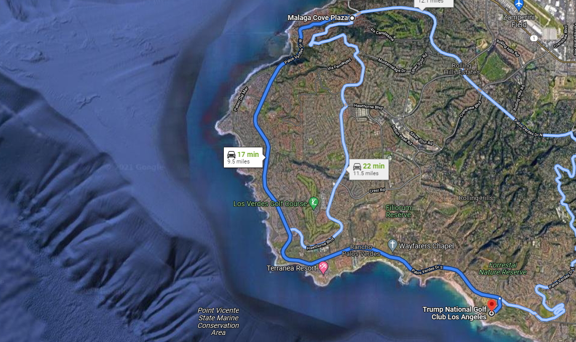 코스의 시작은 사실 샌패드로에서부터 팔로스 버디스 드라이브를 따라 토렌스 비치로 나가는 방법도 좋지만, 저는 말라가 코브 플라자에서부터 팔로스 버디스 드라이브 웨스트를 타고 남쪽으로 내려오면서 팔로스 버디스 드라이브 사우스를 따라 트럼프 골프장까지 이어지는 루트를 추천합니다. 따라서 주말에 이 코스를 달려보고 싶다면 출발지를 말라가 코브 플라자로 맞춰서 떠나시면 어떨까 합니다.