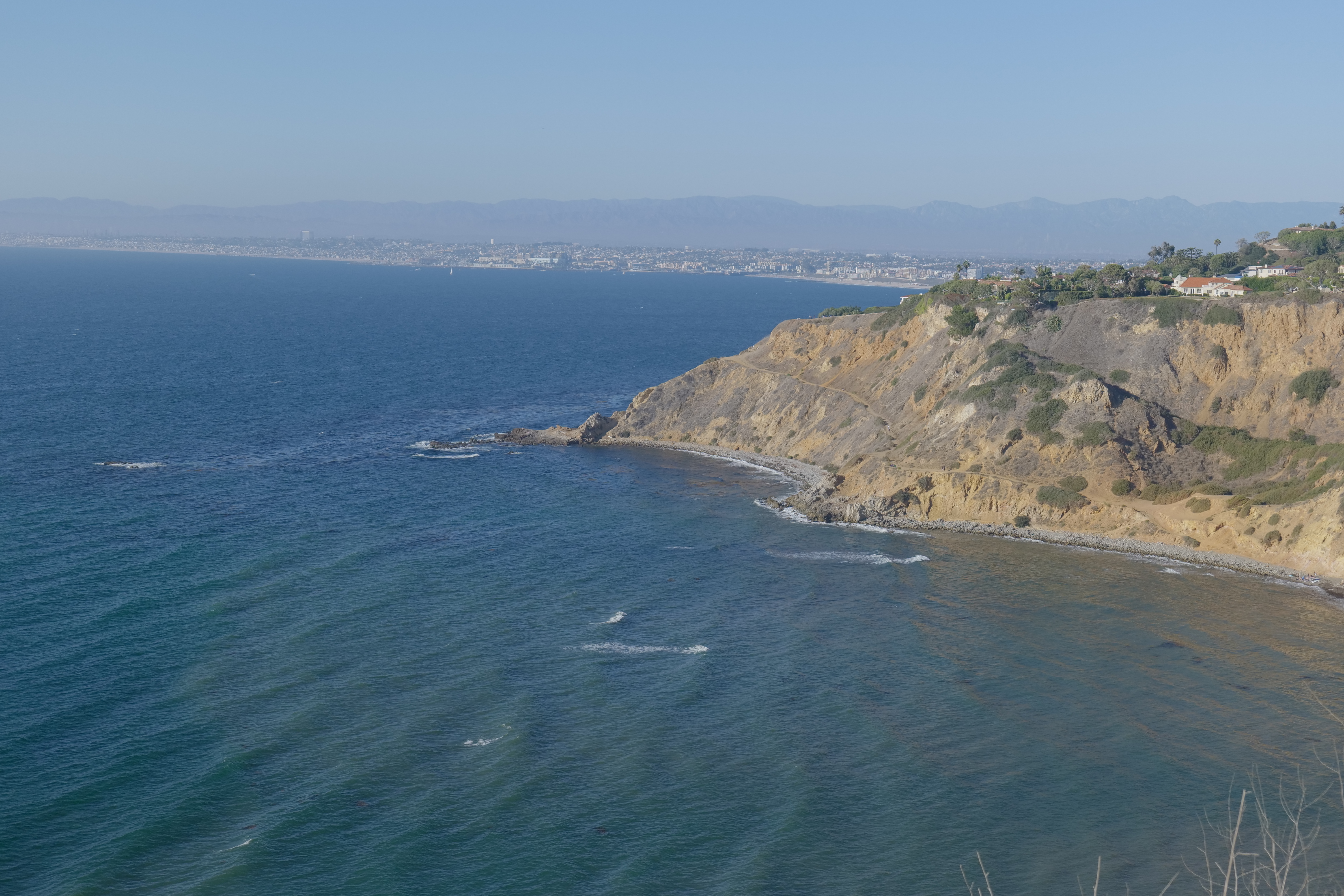 말라가 코브 플라자를 떠나 팔로스 버디스 드라이브 웨스트를 타고 남쪽으로 향합니다. 해안 절벽에 자리한 멋진 집들을 감상하며 달리다보면 오른쪽으로 멋진 해안이 펼쳐지는 진풍경을 만날 수 있습니다. 블러프 코브를 끼고 달리다 보면 오른쪽으로 파세오 델 마(PASEO DEL MAR) 길로 갈라지는 지점을 볼 수 있습니다. 이곳에는 특히 전망을 볼 수 있는 주차장이 마련되어 있어서 잠시 들려보는 것도 좋습니다.