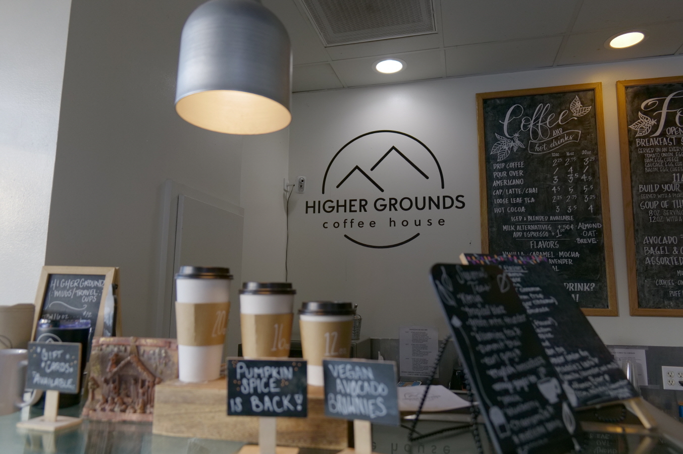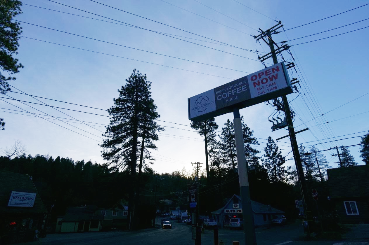 대게는 이렇게 길을 따라 레이크 애로우해드 또는 계속해서 빅베어로 향하고는 합니다. 그런데 오늘은 이 작은 크레스트 라인에서 잠시 시동을 멈춥니다. 이유는 참 예쁜 커피집을 하나 발견했기 때문이죠. 레이크 드라이브 선상에 자리한 하이어 그라운드 커피 하우스는 커다란 통유리 너머로 맛있는 커피 향이 느껴지는 흥미로운 외관을 지니고 있습니다. 이 지역 대부분 상점들이 무거워 보이는 나무로 지은 집에 간판도 굉장히 올드하게 꾸민 경우가 많습니다. 그래서 나름의 멋이라고 해도 선뜻 들어가기가 쉽지 않은 곳도 있지요. 그런데 하이어 그라운드 커피는 산속 도시가 주는 분위기와 너무 잘 어울리는 느낌으로 손님을 맞이합니다.