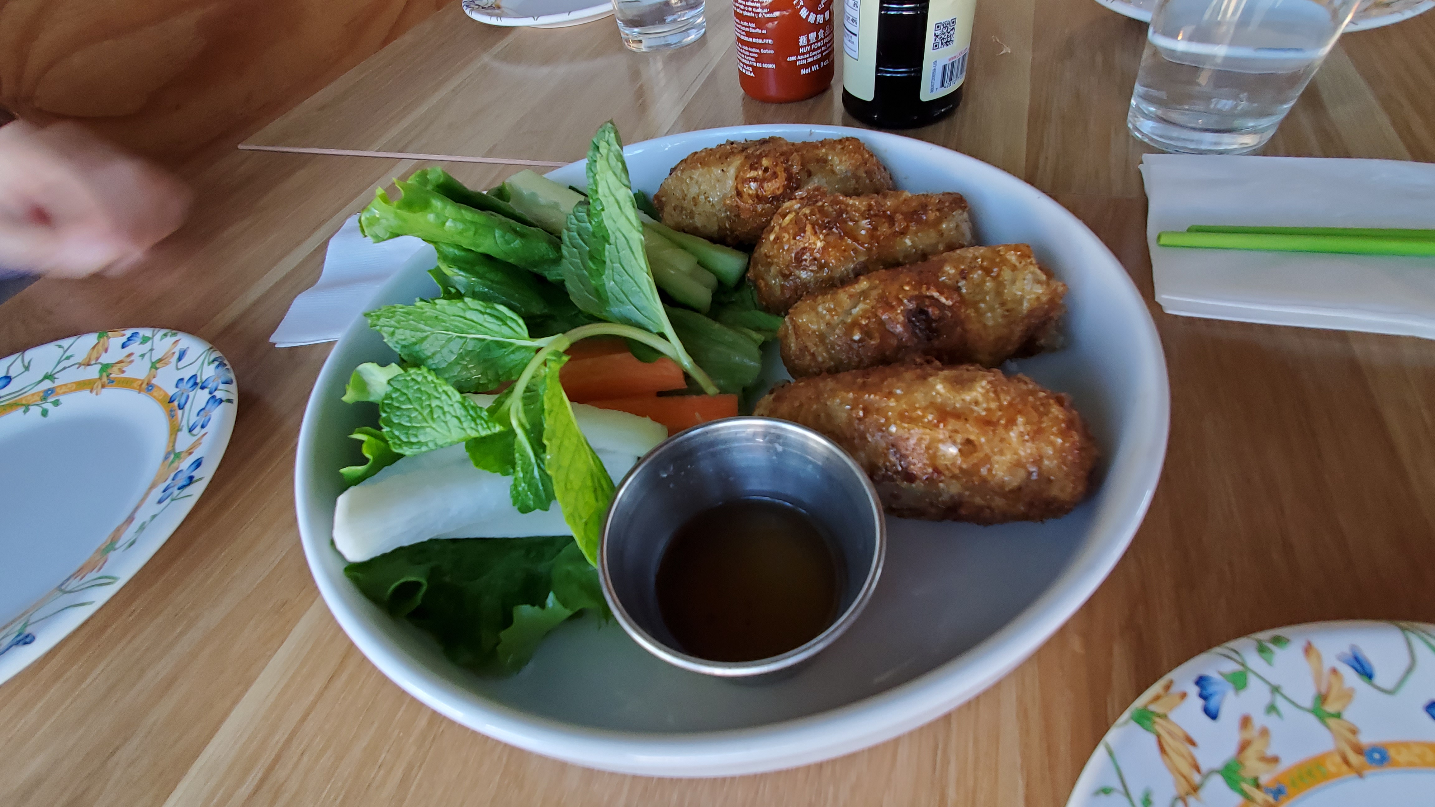 메뉴를 보면 72시간 동안 끓여 만든 국물이라는 단어가 눈길을 끕니다. 필레미뇽이 들어간 쌀국수와 에그롤을 시켜봅니다. 그런데 음식을 담는 플레이팅이 상당히 마음에 듭니다. 에그롤 역시 다른 베트남 식당에서 기대한 뻔한 모양이 아닌 캠프만의 기발함이 돋보이네요. 겉은 바삭하고 속은 꽉찼습니다. 아마 따로 에그롤만 더 시켜서 투고하고 싶을 정도입니다.