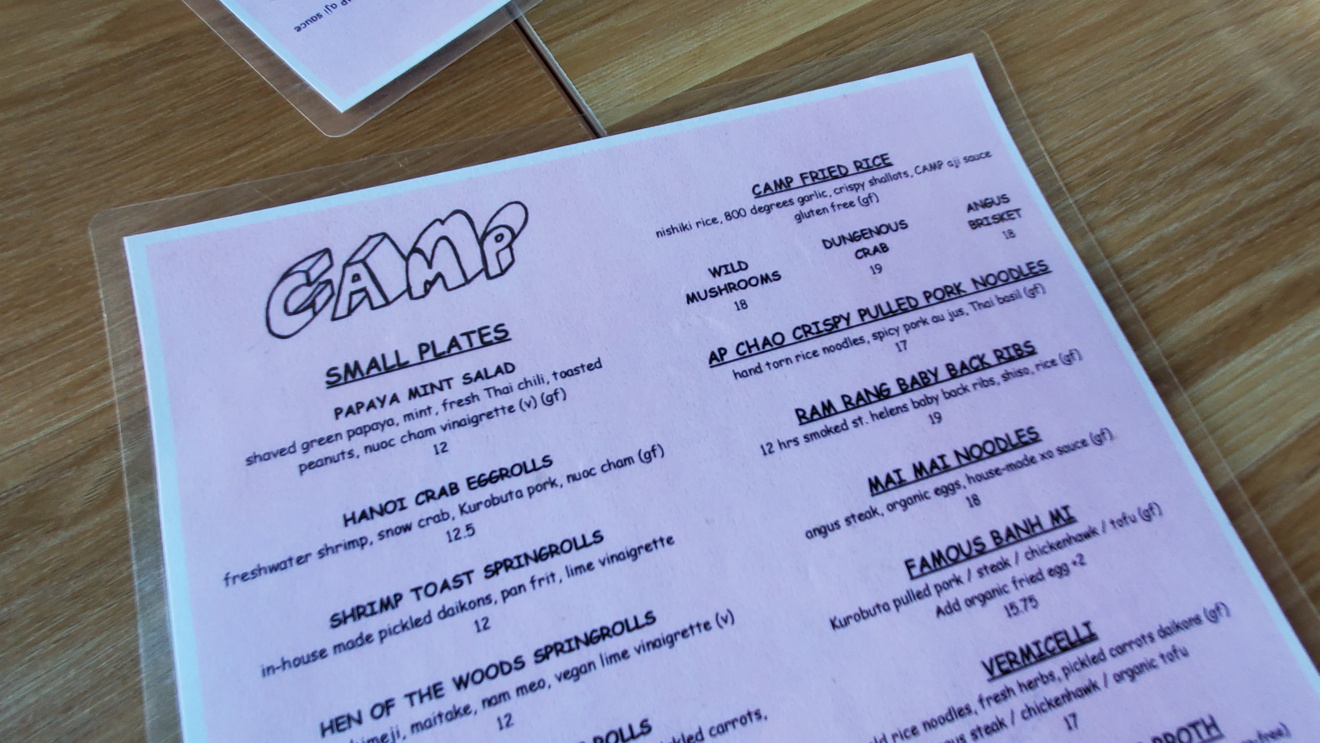그러나 캠프와 같이 젊은 이민세대가 운영하는 식당은 같은 PHO지만 느낌이 많이 다릅니다. 먼저 CAMP는 현대적이면서 차분한 인테리어가 눈길을 끕니다. 편안한 나무 장식이 많고 카운터 바도 깔끔하네요. 접시나 이런 모양은 상당히 클래식합니다. 젓가락도 그렇고요. 캠프는 지역에서 오랫동안 베트남 음식점을 경영해온 부부의 아들과 며느리가 운영한다고 합니다. 젊은 부부는 이 지역에 쌀국수에 대한 진지한 시도가 없었던 것을 아쉬워합니다. 특히 전통적인 쌀국수가 지닌 묵직한 국물 맛이 아닌 대부분 묽은 버전들이 많아는 것에 실망하기도 했다네요. 그래서 이들 부부는 가문의 전통을 이어받아 그들만의 진한 국물이 있는 쌀 국숫집을 열었다고 합니다.