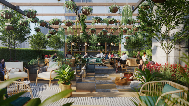멋진 랜드마크로 다시 탄생된 이 건물 옥상에 커티스 스톤은 도심 속 정원을 만들고 있는데요. 이 건물 세입자들은 옥상에 자리한 이 식당을 라운지 삼아 휴식을 취할 수 있을 것으로도 보입니다. 그리고 저녁이 되면 대중을 위한 멋진 칵테일이 있는 루프톱바로 변신합니다.