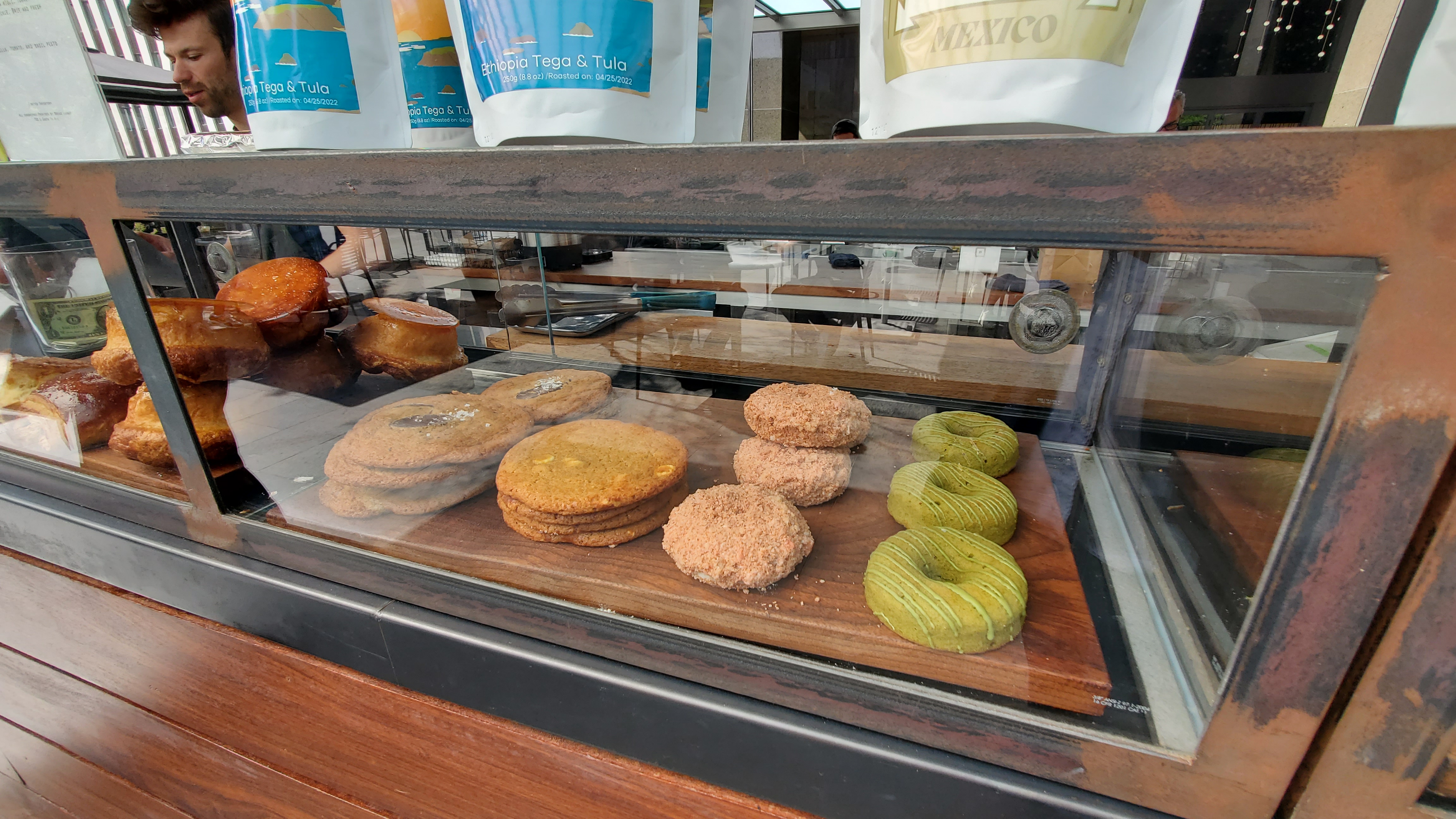 도심 한 가운데 자리한 이유로 아침과 이른 점심이면 양복을 입은 직장인들로 항상 붐빕니다. 다행스럽게도 카페 주변으로는 야외 테이블이 상당히 많습니다. 커피를 갈고, 내리는 소리는 건너편에 자리한 맥과이어 가든에서 들려오는 새소리와 함께 약간은 도심 속 자연의 느낌을 물씬 풍기게 합니다.