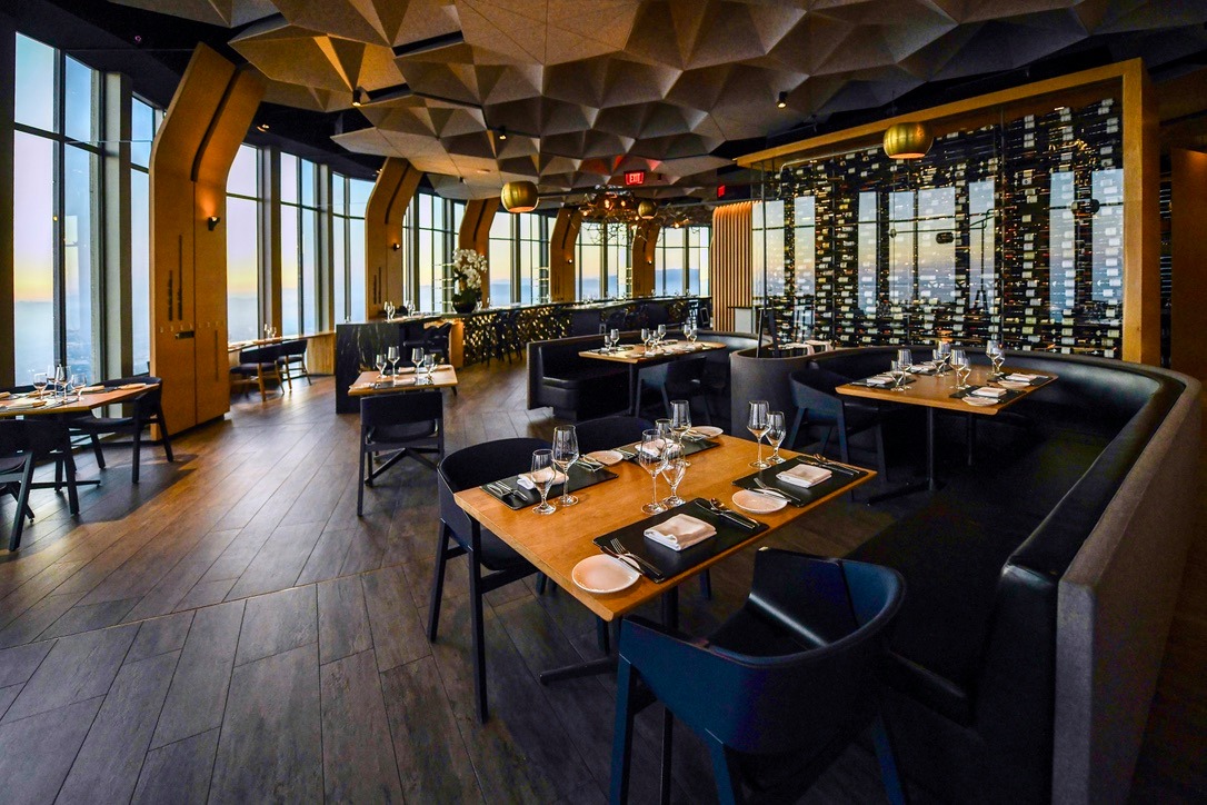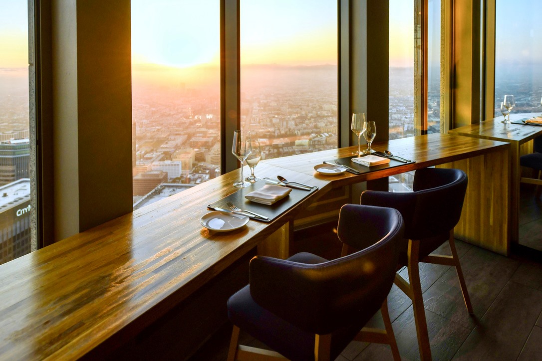 이 식당은 로스앤젤레스 다운타운의 중심이라 할 수 있는 고층빌딩인 US.뱅크 타워 꼭대기에 자리해 있습니다. 본래 이곳은 OUE 스카이 스페이스 LA라는 전망대와 건물 70층과 69층 사이로 내려가는 미끄럼틀인 스카이 슬라이드가 있었는데요, 건물 새 주인이 이 시설을 허락하지 않아서 지금은 폐업한 상태입니다.