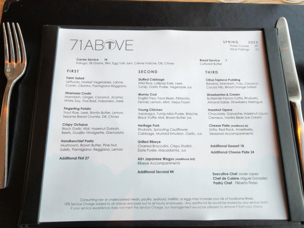 다행스럽게도 71어보브 식당은 영업을 계속하고 있습니다. 식당을 찾기 위해선 예약 사이트를 통해 예약을 미리 하시는 것이 좋습니다. 오픈 테이블을 통해 예약을 하면, 취소 시 물어야 하는 위약금을 포함하고 예약을 할 수 있습니다. 식당은 기본 제공되는 3가지 코스 메뉴를 가지고 있는데요. 기본 코스 1인 $89달러이며, 기타 와인이나 추가 메뉴 등으로 가격이 오를 수 있습니다.