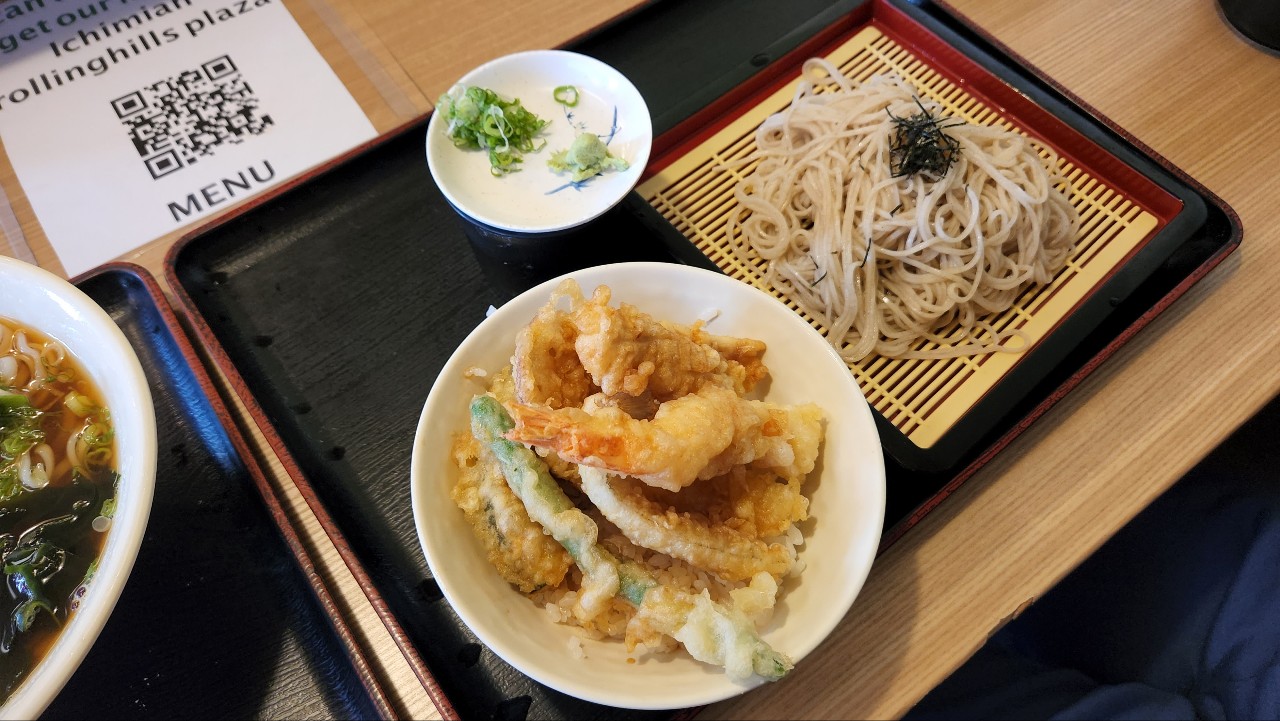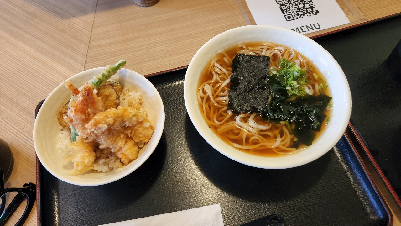 이 집의 메뉴는 다양한 콤보가 장점입니다. 라이스볼과 소바, 우동 콤보는 꼭 골라봐야 하는 주메뉴 중 하나입니다. 저는 새우 템푸라 볼이랑 일반 템푸라 볼을 고르고 사이드는 각각 우동과 소바를 시켜보았는데요. 주변에서는 스파이시 튜나 또는 튜나 아보카도 볼을 권하기도 하네요. 우동 국물은 조미료가 더해진 느낌이 아닌 천연 재료로 국물을 우려낸 맛이 일품입니다. 여기에 튀김 옷의 바삭함도 무난한 수준이네요.