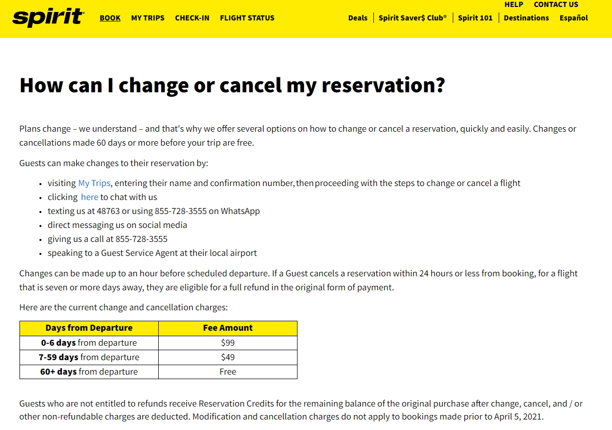 스피릿 항공권 취소 후 환불은 출발 7일전, 예약 24시간 이내라면 전액 환불이 가능하다고 합니다. 하지만 구매 후 24시간이 지나고 출발이 7일 이내라면 $99 취소비가 붙습니다. 즉 $99 제외한 금액을 환불해주는데, 이때는 크레딧으로 받습니다. 그러니 처음 예약할 때 신중하게 해야 합니다.