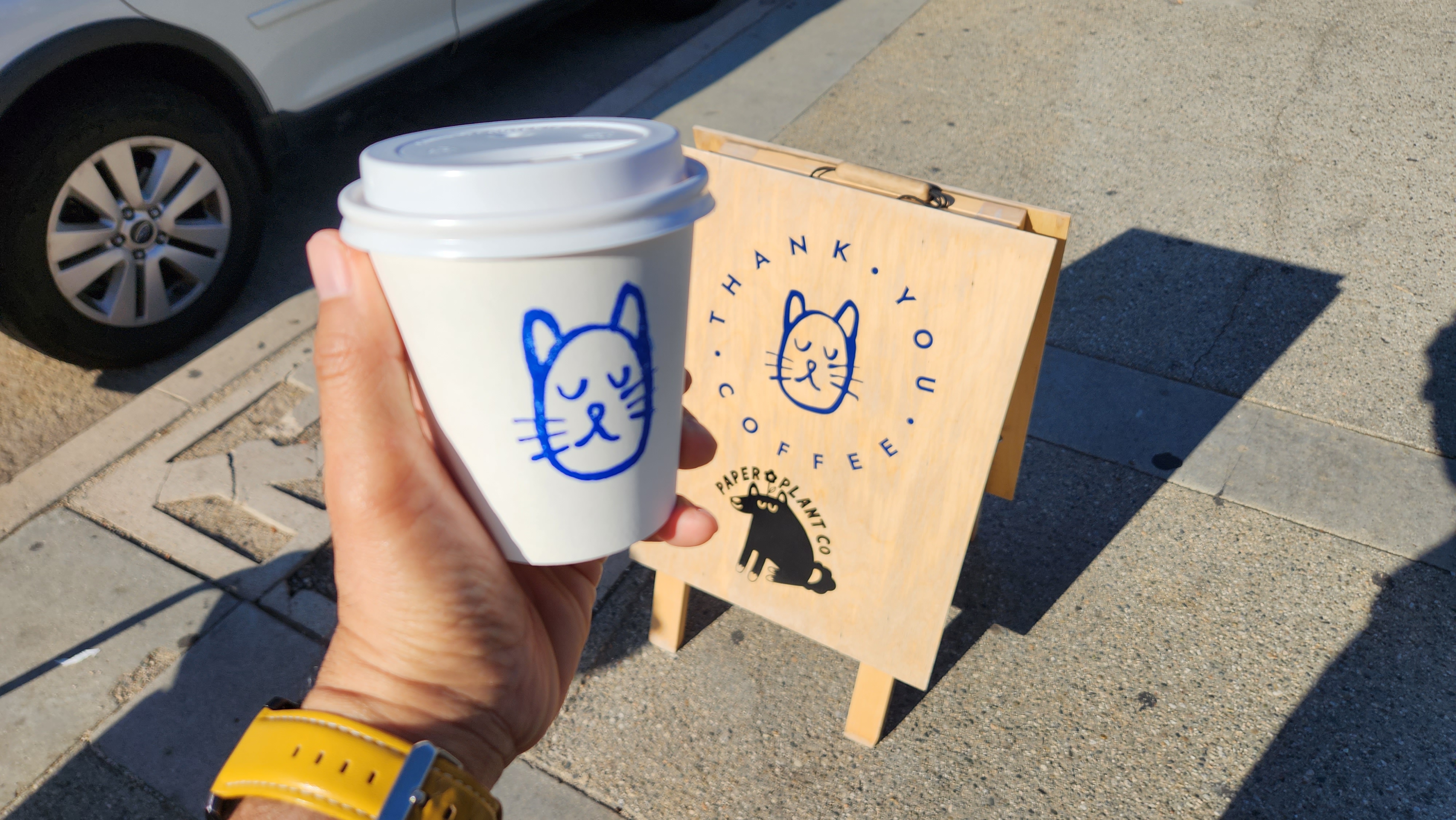LA 차이나타운 힐 스트리스를 걷다보면 눈길을 끄는 빨간 대문을 지닌 커피집이 있습니다. 간판도 화려하지 않고 눈에 잘 띄지도 않지만 고양이 얼굴을 한 'Thank you coffee'라는 이름은 지나는 발길을 붙잡기에 충분합니다. 이 작은 가게는 팬데믹이 한창인 때에 문을 열었는데 안으로 들어가면 다양한 문구류를 파는 편집숍과 커피바가 함께 어울려 있습니다.