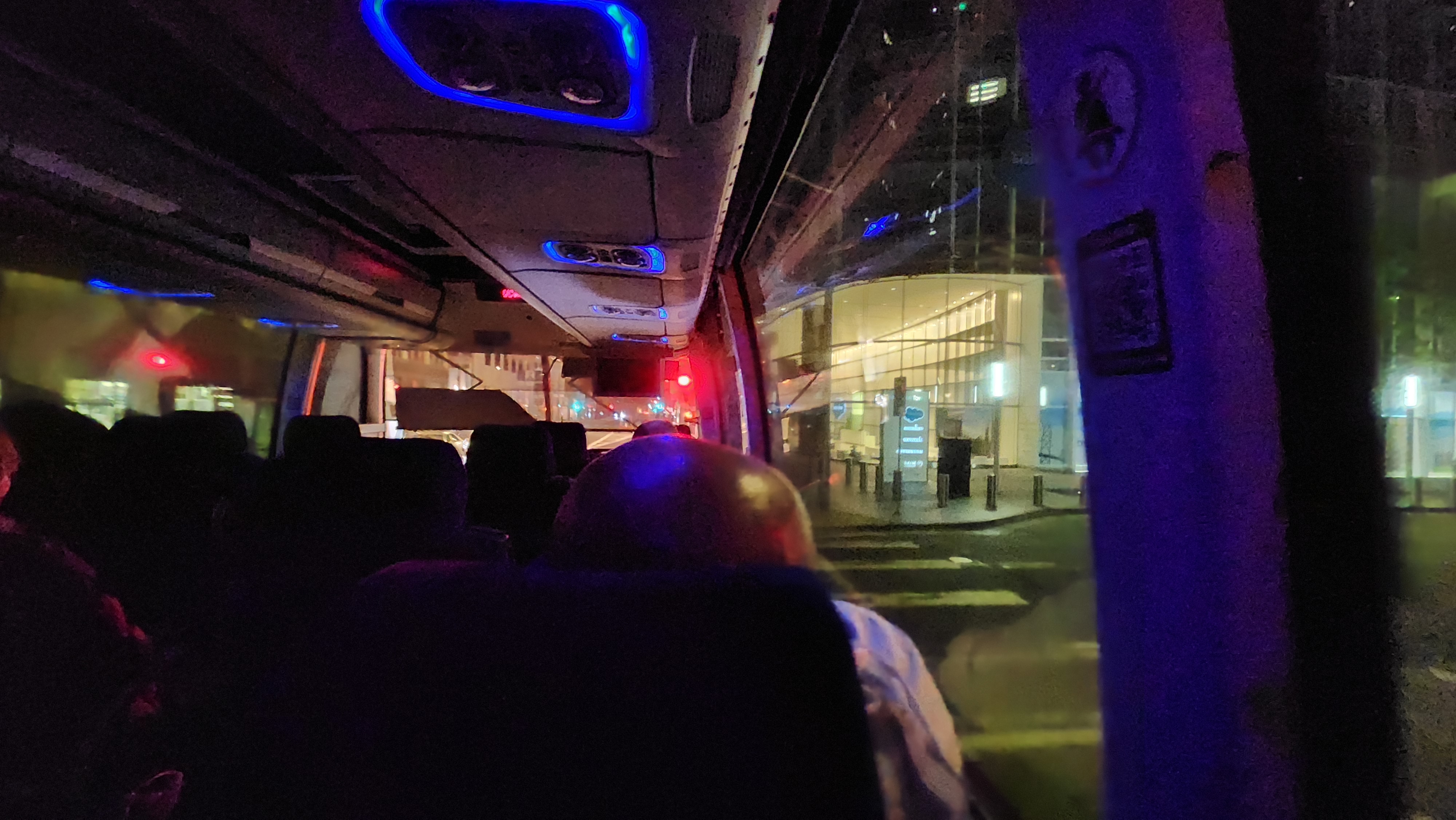 버스는 볼보에서 만든 비교적 신형 버스로, 실내 청결 상태는 좋습니다. 다만 좌석 간 간격은 그리 넉넉하지 못하고, 좌석 상단 짐을 넣는 보관함 입구도 좁아서 큰 가방이나 짐은 넣기 힘듭니다. 와이파이는 된다고 하는데, 테스트해보진 못했네요. 차량 내부에 화장실이 있고, 뒤로 가면 약간 비행기 비상구처럼 넓은 자리가 있는데, 휠체어 승객이 타면 비켜줘야 한다니 참고하세요.
