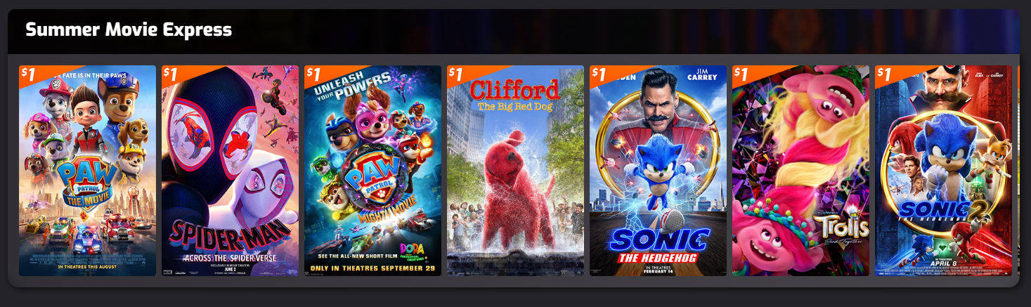 만약 이번 여름 시즌 아이들과 보낼 좋은 이벤트를 찾고 있다면, 리갈 시네마에서 준비한 1달러 이벤트를 놓치지 마세요. 극장은 매주 화요일과 수요일 오전 11시에 '썸머 무비 익스프레스'라는 영화 티켓을 단돈 1달러에 제공합니다.