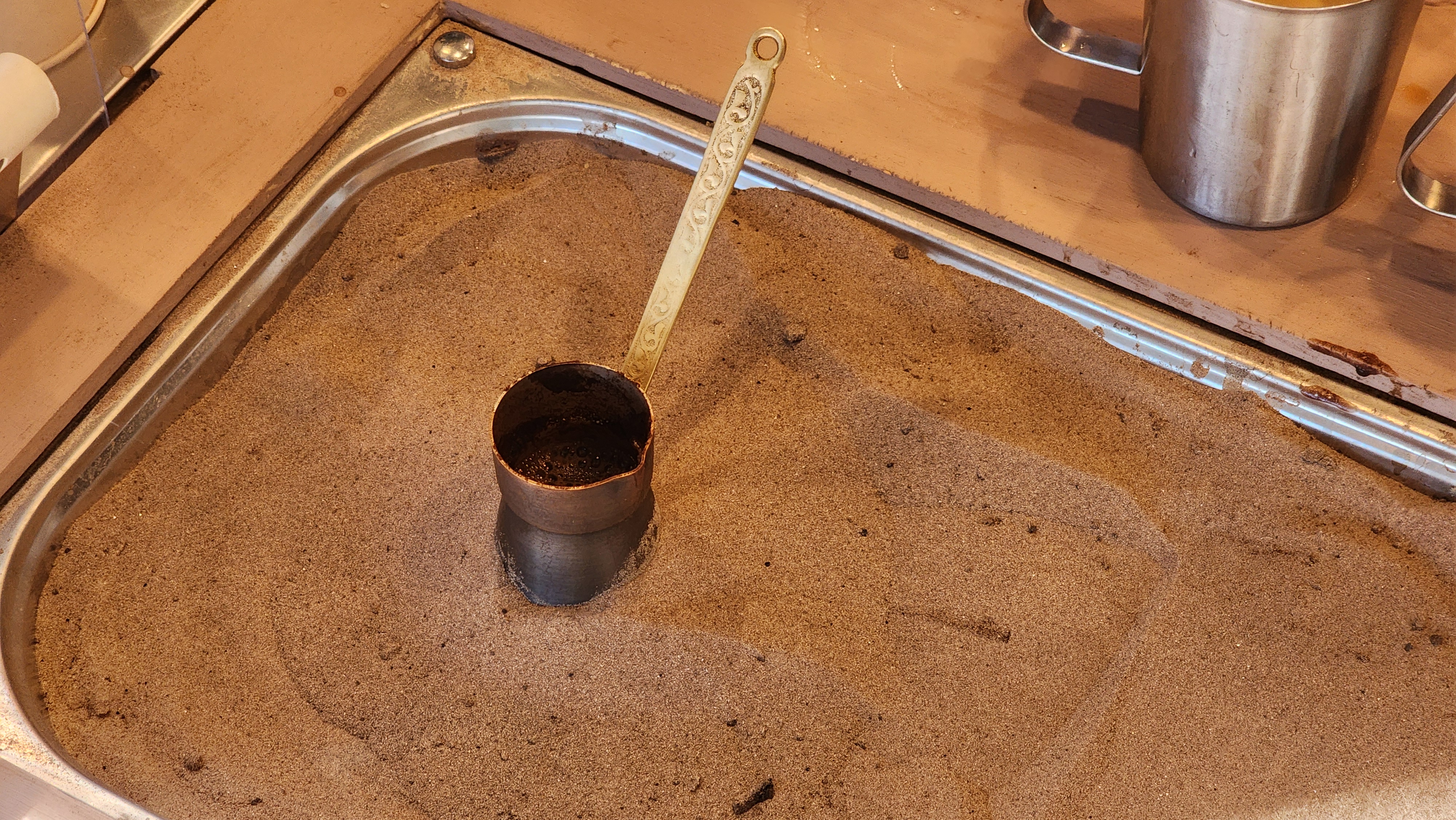 야라 커피의 대표적인 특징은 핫 샌드 커피(Hot Sand Coffee)입니다. 이 전통적인 중동식 커피 제조 방식은 뜨겁게 달군 모래 위에서 커피를 끓여내는 독특한 과정으로, 진하고 향기로운 한 잔을 제공합니다. 특히, 꿀과 설탕으로 림(rim)을 장식한 컵에 제공되어 시각적, 미각적으로 모두 만족스러운 경험을 선사합니다.